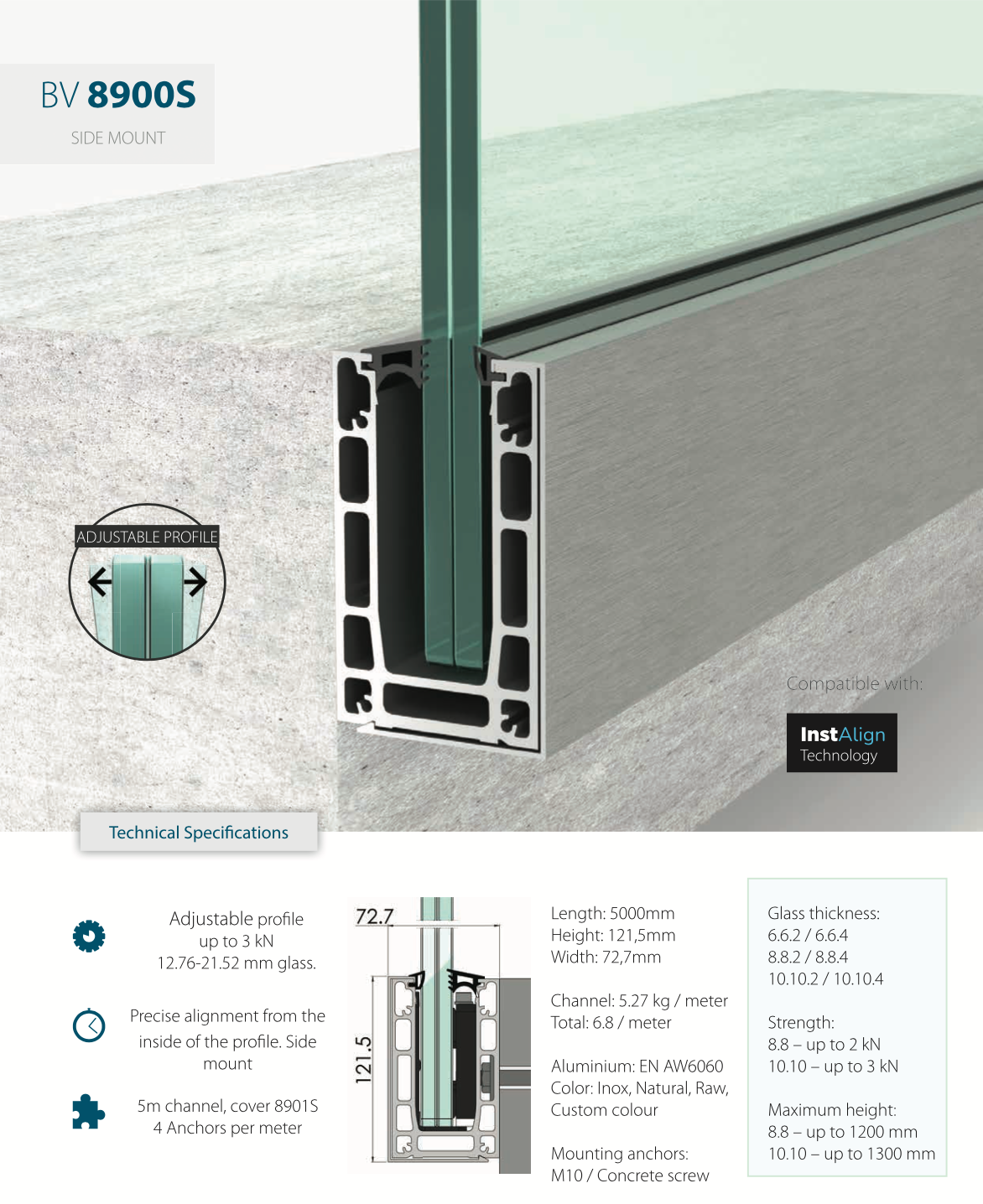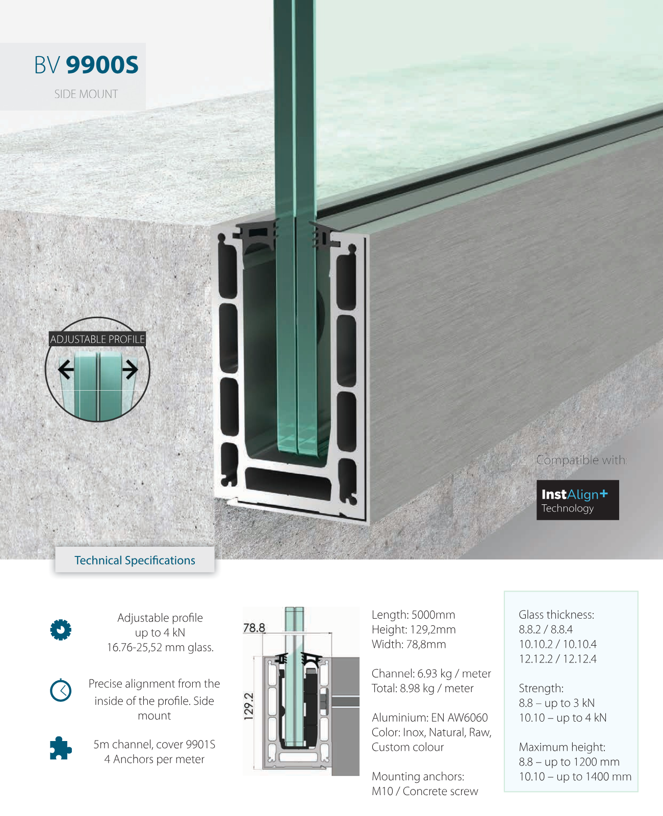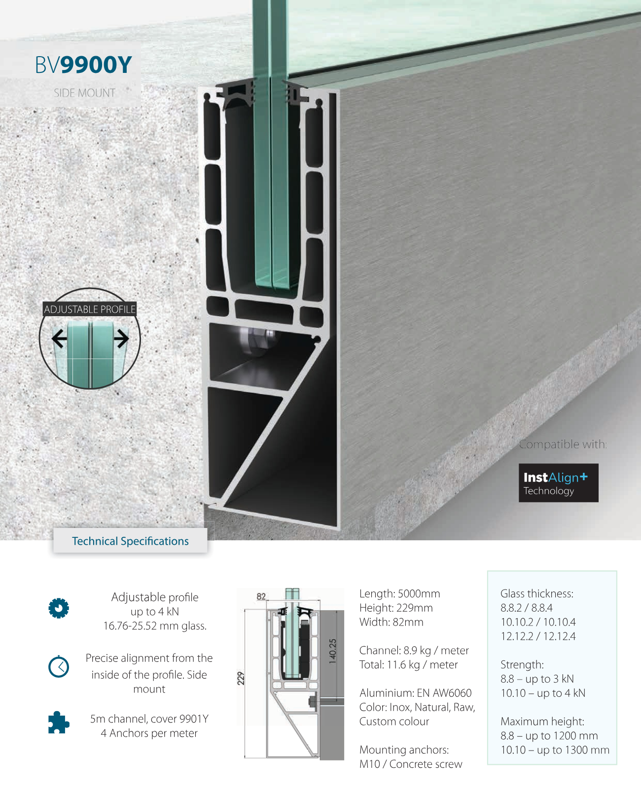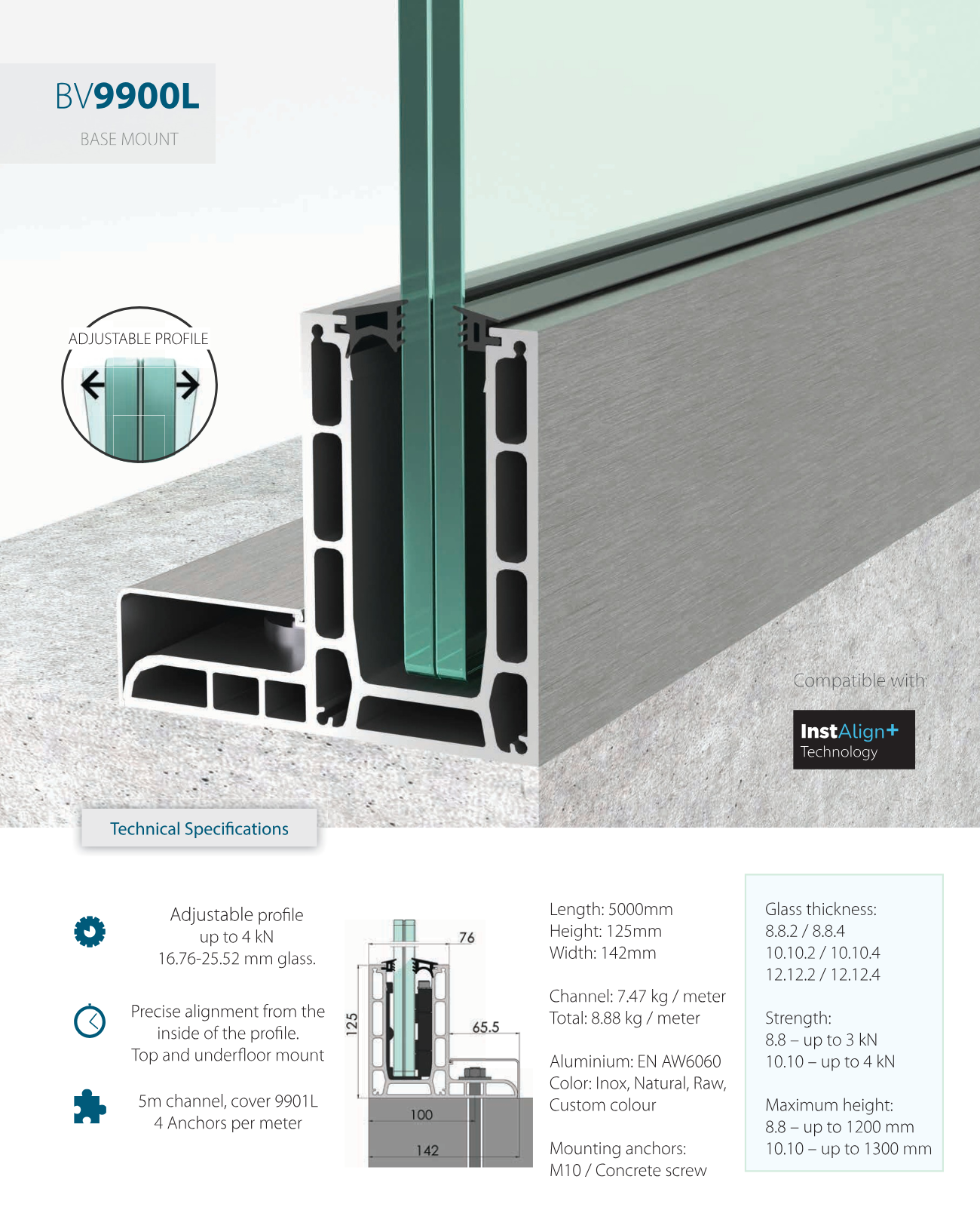 BV9900 is a premium glass balustrade system that combines a sleek, modern appearance with reliable strength. It ensures perfect alignment of the panels and is ideal for balconies, roof terraces, and public buildings where both safety and design are important.
